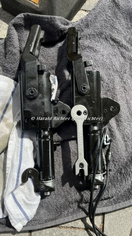 Wenn der Wasserablauf links oder rechts verstopft ist, kann das Wasser so hoch steigen, dass es an der Unterseite des Druckzylinders den Hydraulikanschluss, der aus Metall ist, abrosten lässt. Hier ist oftmals ein lauteres einmaliges Zischgeräusch zu hören. Auch bildet sich feiner Ölnebel, der kurzfristig sichtbar sein kann. Ein Kunde meinte eine kleine Explosion gehört zu haben.